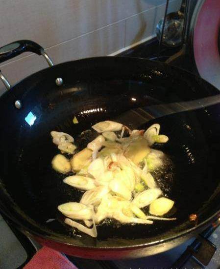 油下鍋燒熱,可以多點,薑和大蔥爆香