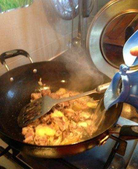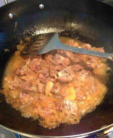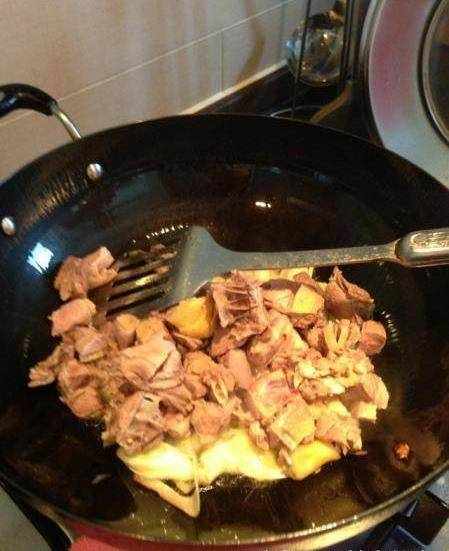 鴨肉倒下去、炒啊炒
