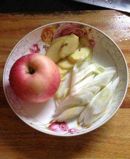 準備配料老薑片,大蔥(也可以蒜葉)蘋果一個(紅富士)
