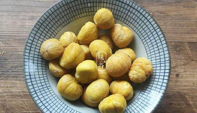 3、將板栗放入水中燒開5分鐘撈出,剝開栗殼。