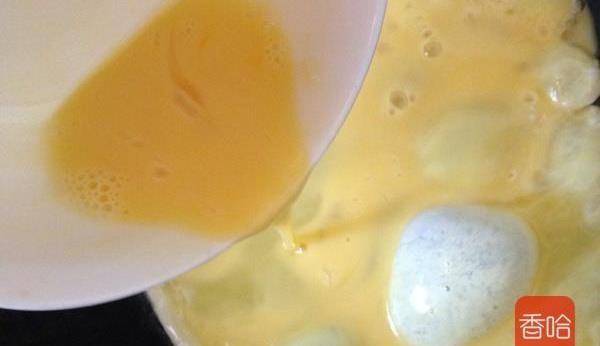 1.雞蛋打散入油鍋炒熟。