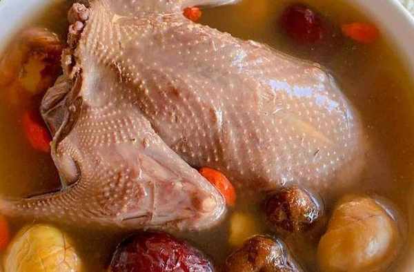板栗,鴿子,桂圓,黨參,當歸,紅棗,枸杞,薑片。