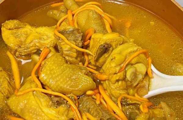 板栗,蟲草花,雞肉,紅棗,薑片。