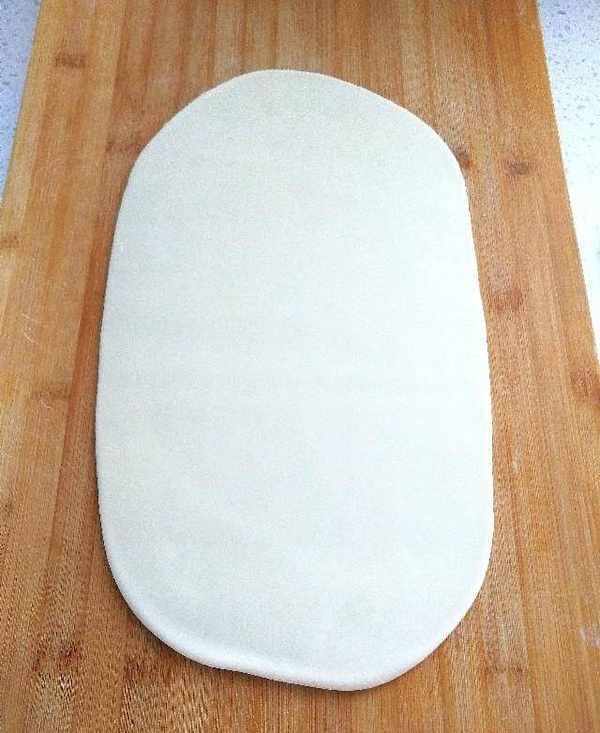 拿出餳好的面團,用搟面杖搟開,厚薄在一厘米左右。