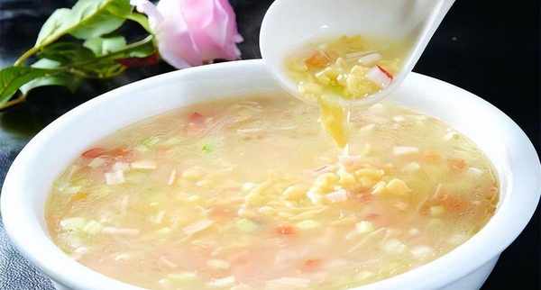 3、勾芡後把雞蛋甩入鍋內,再把黃瓜下鍋,攪勻淋點香油,倒出來後就可以喝瞭,潤肺解燥,營養又好喝,快做起來吧。