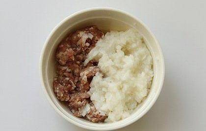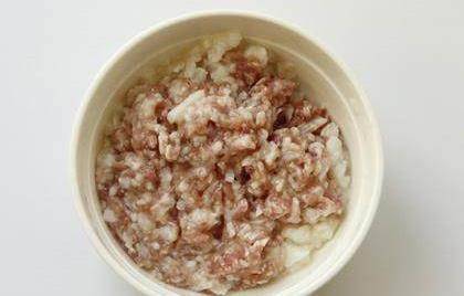 倒入醬油順一個方向,盡可能多的攪拌,將肉餡上勁。