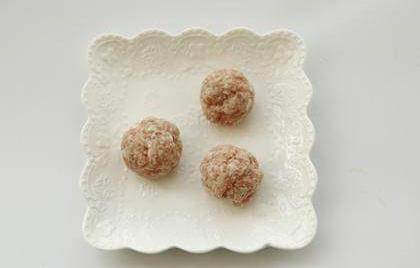 胡蘿卜洗凈去皮切成薄片,肉餡搓成乒乓球大小的肉丸子。