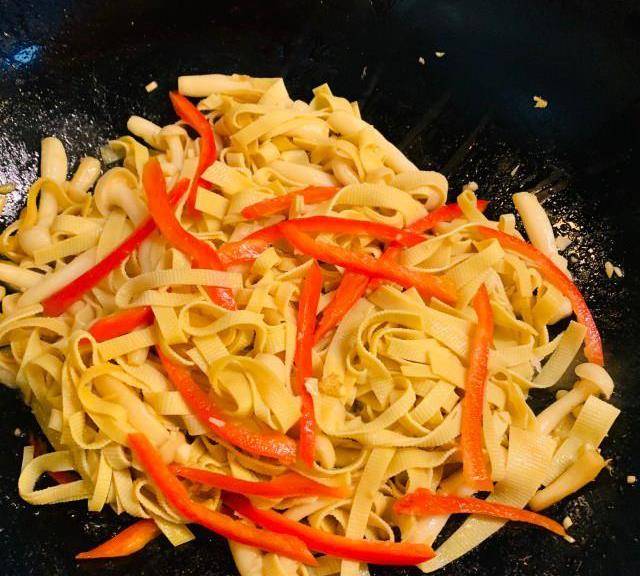 如果放豆皮絲後鍋中較幹,可適量放少許水翻炒。