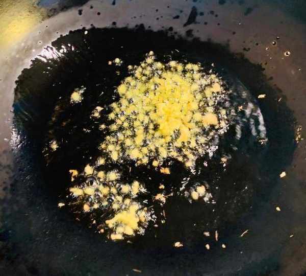 第3步、鍋中放油,爆香薑末。