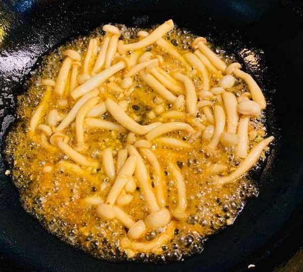 第4步、放入白玉菇煸炒。