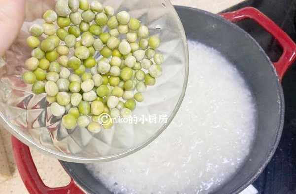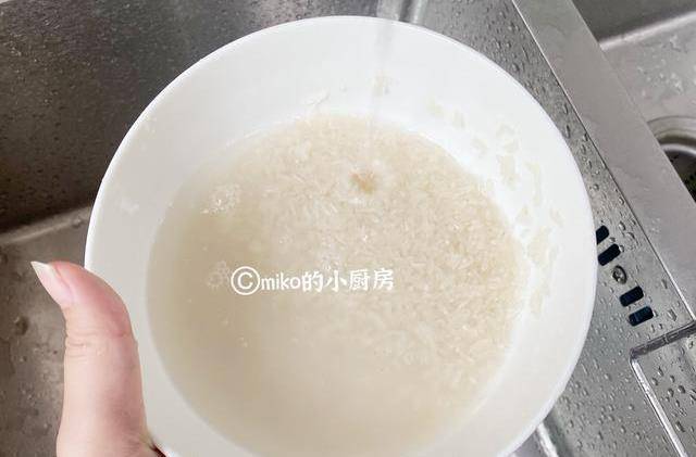 第二步:大米淘洗幹凈放入鍋中,鍋裡加入6碗清水,大火煮開後,用最小火煮15分鐘,煮至大米開花。