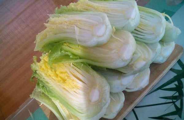 1、白菜白去外面的老葉,切掉白菜根,然後用清水清洗幹凈,甩一甩裡面的水分備用,如果裝酸菜的容器比較小,或者是想醃的快一點,可以把白菜切成兩半,或者切成條,根據自己的需要來。