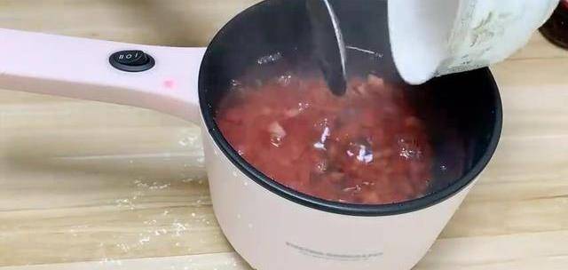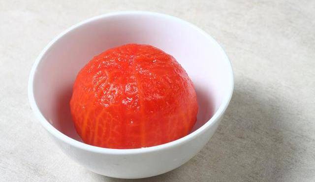 西紅柿洗幹凈後打上十字花刀,加入開水泡三分鐘,再來把皮撕掉,改刀切成丁備用。鍋加入半鍋水,水燒開,先加入西紅柿丁攪拌均勻,熬成濃稠一點的湯之後,打入一個雞蛋,煮至雞蛋定型,加入一勺老幹媽攪動均勻,再依次加入配料包、調料包、醬料包。