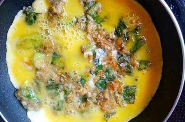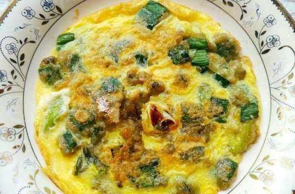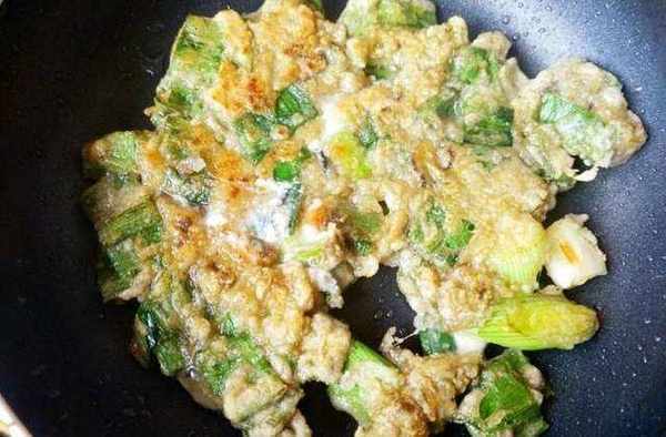 第三步:鍋中加適量的油,將海蠣煎制兩面金黃,接著再四周淋上蛋液,呈餅狀即可。