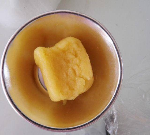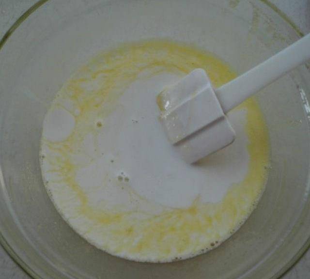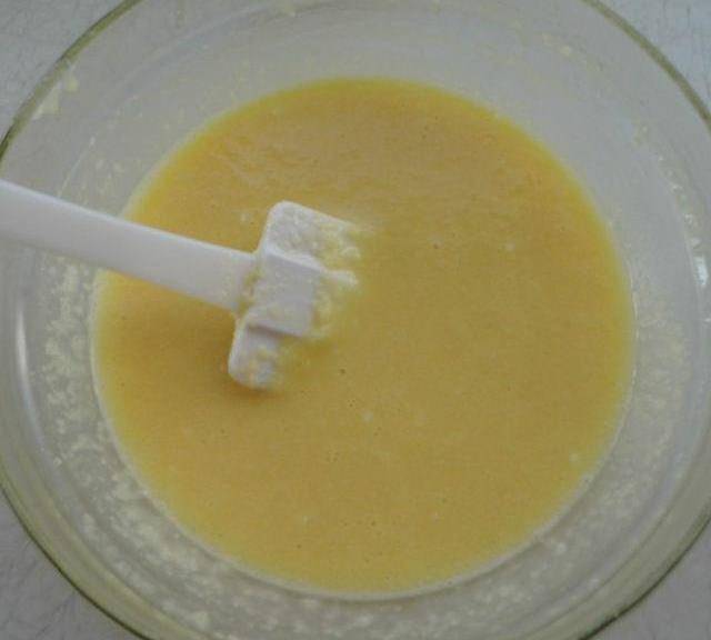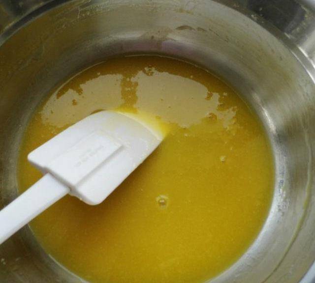 第5步、餅餡:將配料中的黃油加糖隔水加熱融化,趁餘溫倒入蛋液,攪拌均勻