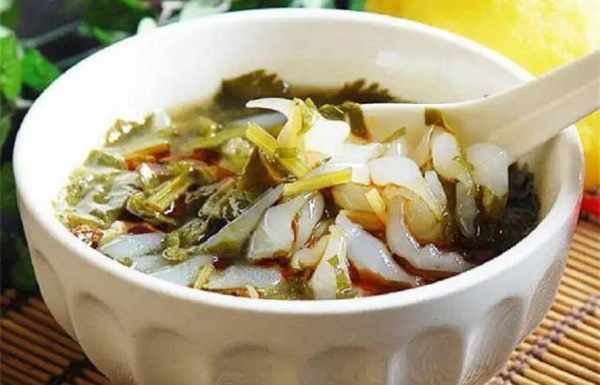 漿水魚魚是陜西的傳統小吃,隨著飲食文化的發展,它在南北方都非常出名,一般用淀粉做成,為瞭讓漿水看起來好看,可用黃瓜、芹菜等打出汁和面,晶瑩碧綠,看起來非常好吃。