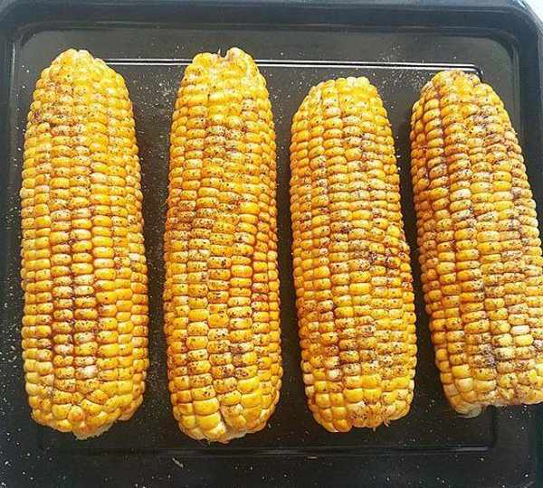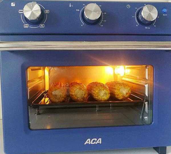 第7步、中途可以取出翻一下面,時間結束,水果玉米就烤熟瞭,帶上防燙手套取出,小心燙哦!