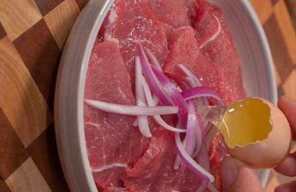 再加入一個蛋清,在醃制的過程中放上蛋清可以鎖住肉的水分,隔絕肉和空氣,也可以不至於被鹽,調味品破壞肉的鮮嫩,使肉的口感始終保持滑滑的,嫩嫩的。放入蛋清後,使勁用手抓一抓肉,使肉跟蛋清更加融合