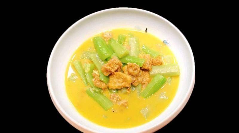 另起鍋燒熱油,放入薑末炒香,加入兩勺高湯大火燒開,下入絲瓜、油渣一同燒三分鐘左右出鍋裝盤即可。