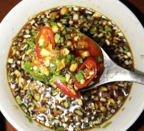 吃白切豬手配上這個調料算完美,沒有這個蘸汁的白切豬手是不完整的。這個醬汁的味道是酸甜香辣的,具體做法就不給大傢說瞭,因為我也沒搞懂是怎麼做的,但是白切豬手就是要蘸上這個汁才好吃,蘸其他吃起來都是沒有味道的。