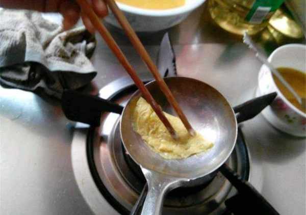 第三步:包蛋餃。在鍋裡面倒入一些雞蛋液,放在小火上烤,等雞蛋液成形之後,將肉餡舀出一小勺放入蛋餃皮中,然後將蛋皮翻過來蓋住肉餡,收口處用火繼續煎一下就可以封口瞭。因為短時間內肉餡可能不會熟,所以我們可以將蛋餃放在鍋中,小火不停地翻動一段時間,等兩面都變成金黃色,我們的蛋餃就完成瞭(如果還是有點夾生可以蒸一下)。