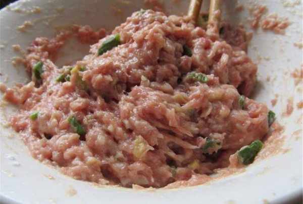 第二步:做肉餡。將蘑菇和馬蹄切成小丁,用刀背將生薑拍碎,蔥白切末放入肉末中,打一個雞蛋在裡面,加一勺入食鹽,生抽、胡椒粉和白糖少許,一勺油和一點耗油調味,用手將肉餡抓勻,放在一旁備用即可。