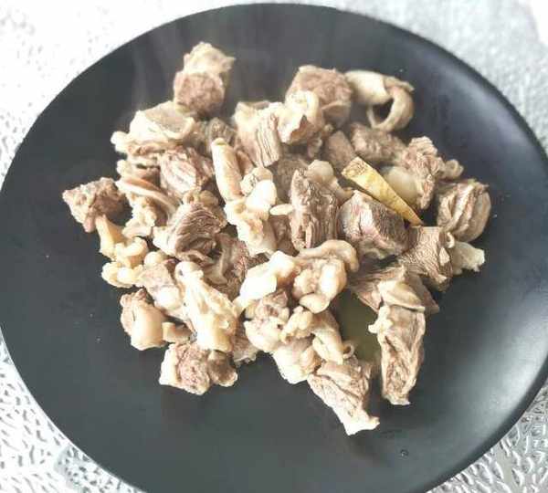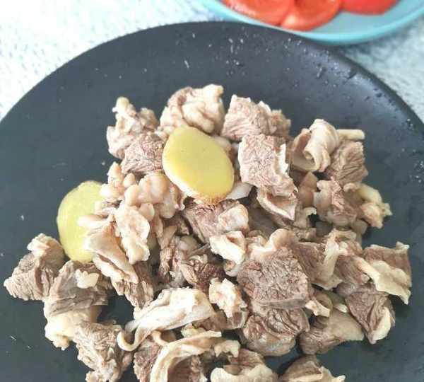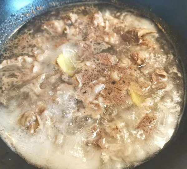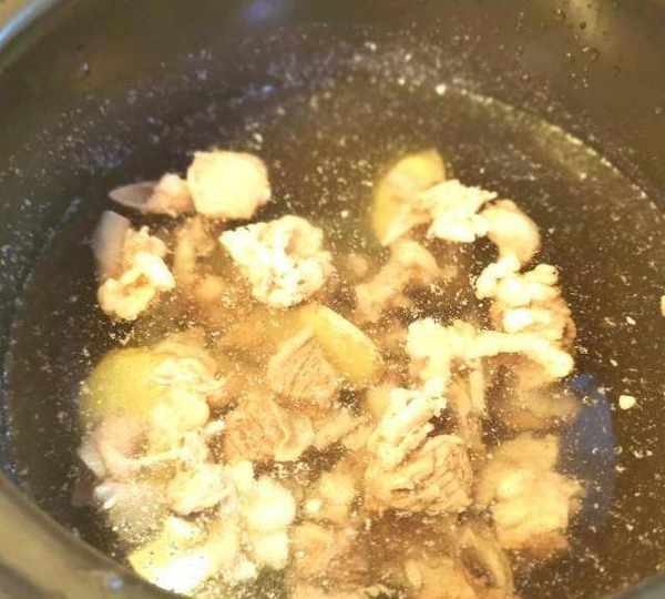 第9步、將牛腩放入電壓力鍋中,放入薑片和料酒,適量放水,用牛羊肉檔即可。