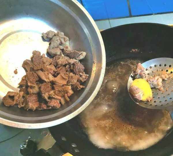 第12步、多炒一會兒,炒出紅湯,加適量牛肉湯,將煮熟的牛腩放入一起煮。