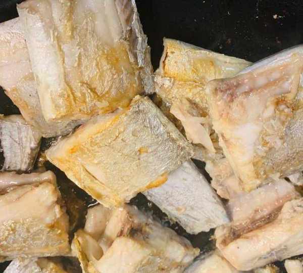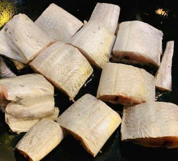 第2步、鍋中少放油,下帶魚段煎一下。
