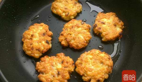8.直到兩面煎成金黃,肉末豆腐餅就做好瞭