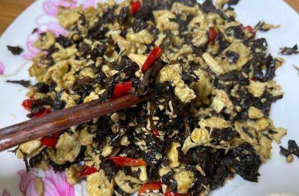 梅幹菜又稱烏幹菜,黴幹菜。是浙江紹興一種物美價廉的傳統名菜。也是紹興的著名特產。梅幹菜油光烏黑,香味醇厚,耐儲藏。梅幹菜燒肉,梅幹菜扣肉,梅幹菜肉餅都很好吃,還有一道菜也是好吃下飯,它就是梅幹菜炒雞蛋,雞蛋滑嫩,還有梅幹菜的幹香,越嚼越香,好吃好做。看看具體是怎麼做的吧。