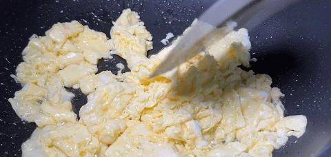 6.定型後用鏟子翻炒,炒成雞蛋塊,塊可以稍微小點,然後盛出備用