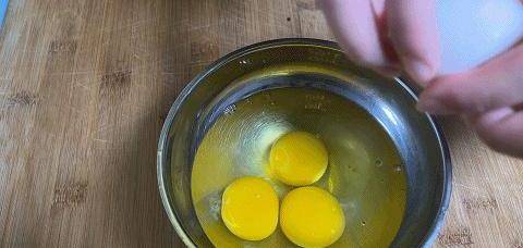 2.在一個碗中打入4個雞蛋,用筷子充分攪散,放一旁備用
