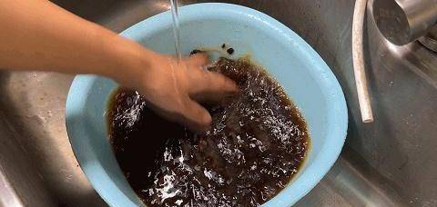4.梅幹菜泡好在流動的水下面沖洗幹凈,一定要多清洗幾遍,然後擠幹水分放入碗中