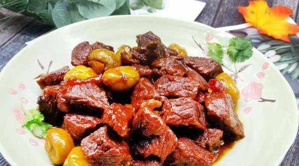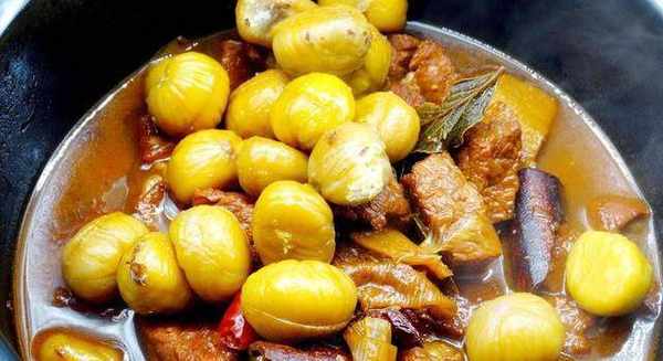 【栗子燒牛肉】烹飪要點:1.牛肉塊用清水醃制多次變白,血水變幹凈瞭,幾乎沒有瞭腥味,2.糖的顏色不能炒,可以用舊抽屜換顏色,3.牛肉想快點熟變軟,可以加一些茶葉,牛肉不僅熟得快,而且香味也很香,4.炒牛肉塊時,加入一半量的食鹽,可以調味,還不影響牛肉蛋白質的凝固,5.沙鍋裡一定要放熱水,6.栗子是可以的,但請不要吃太多,一天最好吃的不到十個。