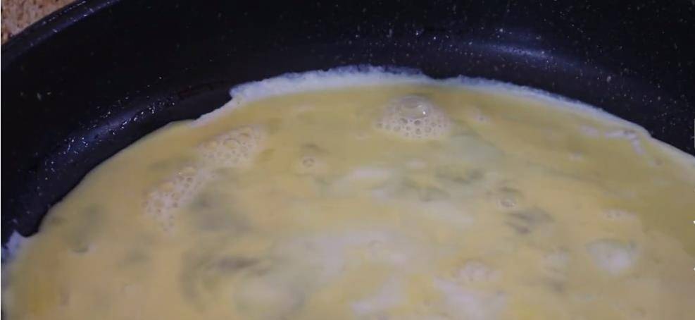 1.鍋中倒入雞蛋液煎的時候一定要把雞蛋液搖均勻,這樣出來的雞蛋皮薄厚均勻,吃起來更加美味;