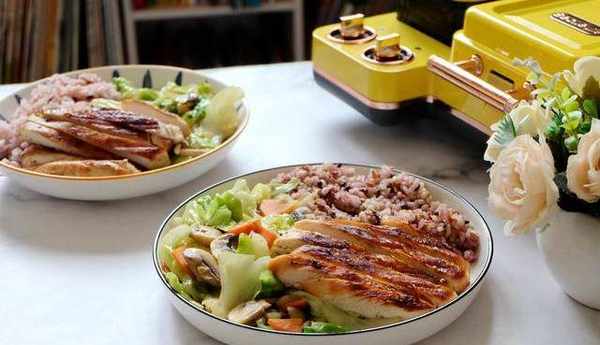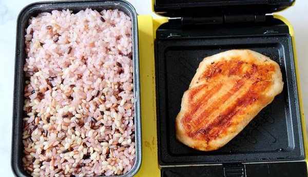 一塊雞胸肉做好,再做另一塊,也不會影響另一側燜米飯,合理利用時間。