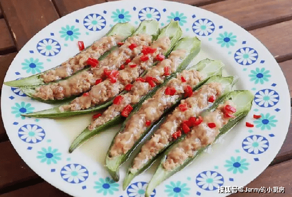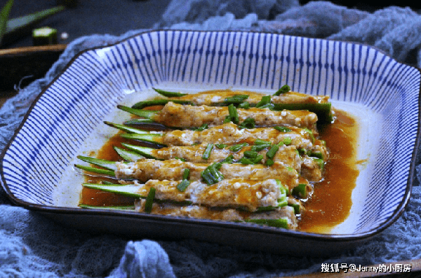 秋葵洗凈,對半切開,去掉籽,塞入肉餡。