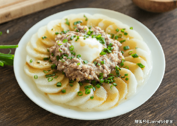 蒸好後,澆上芡汁,撒些蔥花,就可以食用瞭。