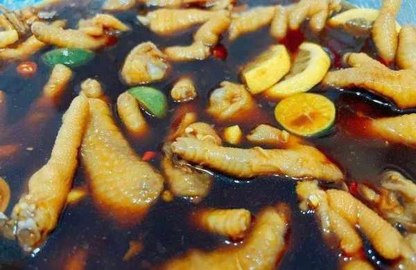 食材:雞爪1500g、蒜米4個、小米椒12顆(因人而異)、檸檬2個、醃檸檬4個、薑1塊、青檸8個、生抽4勺、老抽1勺、蠔油1勺、白糖2勺、醋3勺、料酒1勺、純凈水1000ml。