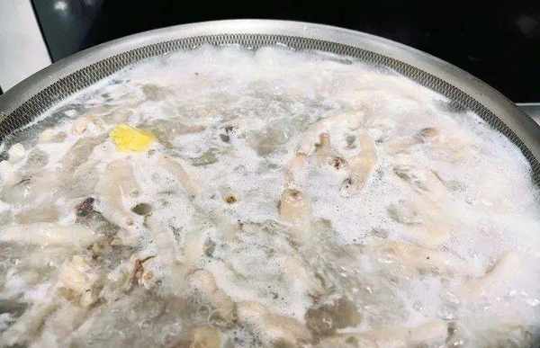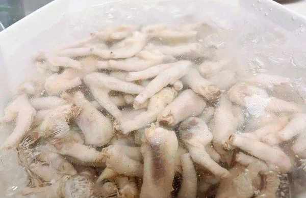 6. 雞爪煮熟後撈起,放入冰水中浸泡。