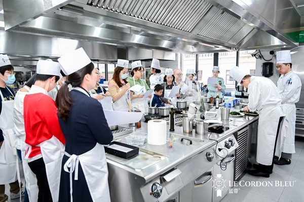 據介紹,藍帶國際學校創辦於1895年,百年來,已經在20多個國傢開設瞭35所學校,是一個國際性的教學機構。藍帶上海從2015年至今, 8年間學生來自中國各地,學校培育瞭接近4000位學生,他們將法國的廚藝,融入中國各地,有1/3的學生在自己的城市開設瞭店鋪。讓熱愛烹飪和追求更廣闊舞臺的中國年輕人,無需遠赴重洋,就能掌握具有國際水準的技能。其中有一位學生,學成之後自己開設的餐廳,更是獲得瞭三星米其林的評級。