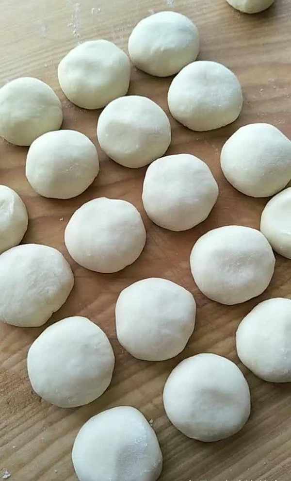 在面團都醒好之後,將這些面團都慢慢的揉成等量的小面積,然後在面板上撒一些比較幹的面粉,防止這些面粘在上面,這些都做好之後,用搟面杖將這些小面團用搟面杖,搟成薄餅,四張組合成一組,然後再在上面用小刷子刷上一層油,要慢慢的刷,盡可能的刷均勻,然後一組做完之後,再在上面疊放一組,一次進行,然後再次用搟面杖搟開,這樣面餅的面積就變為原來的好幾倍。