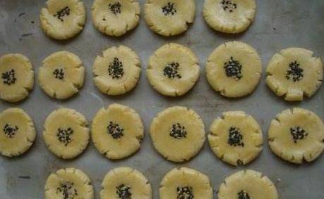 5、隻要準備好之後,先將烤箱調到170度,預熱10分鐘左右,然後在烤盤上鋪上一層吸油紙,將我們準備好的桃酥一個個放在烤盤上面,然後放在烤箱中烤30分鐘左右,這樣非常酥脆,又美味的桃酥就做好瞭。