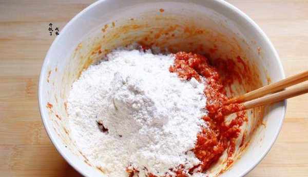 8.下圖是第二次加瞭面粉的狀態,每次都要攪拌均勻,使面粉和肉餡可以充分的融合。