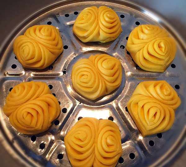 2.蒸好後的南瓜饅頭關火後一定要燜5分鐘後再開蓋,這樣饅頭不會回縮影響口感。