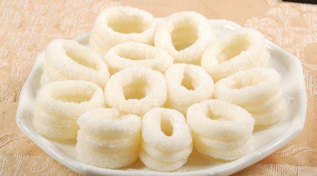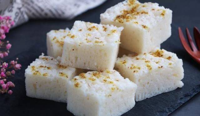 現在已經蒸好瞭,出鍋,我們的大米糕就做好瞭,給他脫膜,捏起來彈彈的就證明熟透瞭。