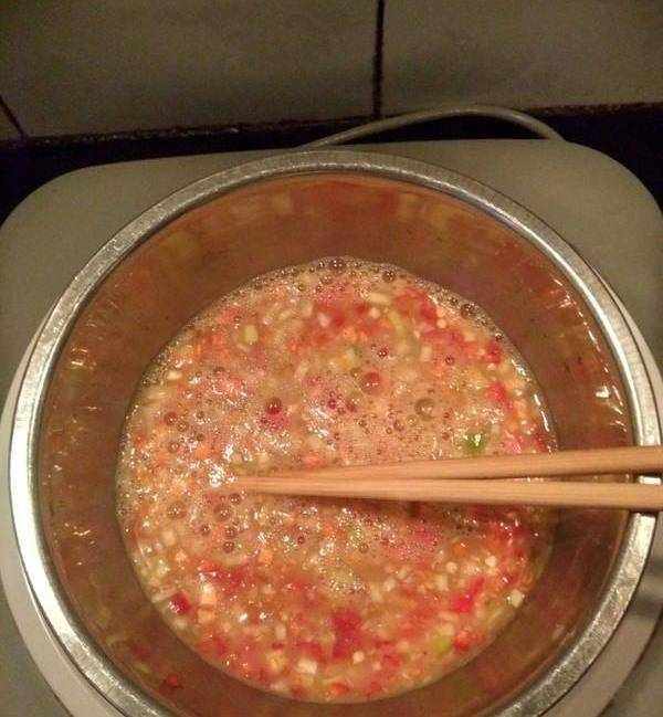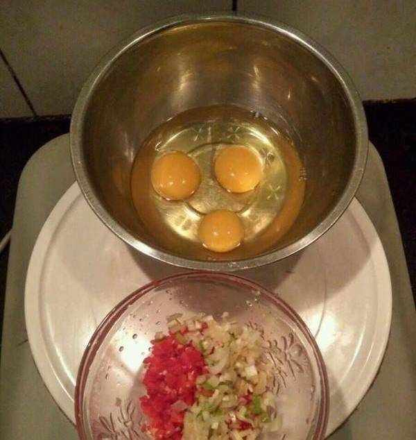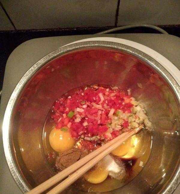 2.雞蛋加所有調料,紅辣椒,攪拌均勻。