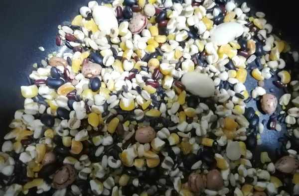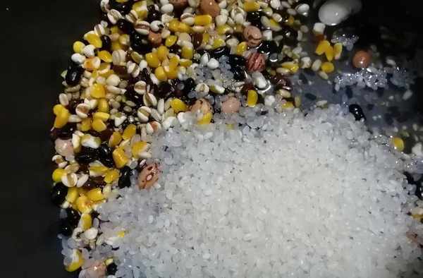 1,取適量除大米和糯米以外的所有雜糧,淘洗幹凈,提前泡好。(玉米仁和豆類不好煮,尤其玉米仁最少得泡5~6個小時。現在天冷我是頭天晚上泡上的)