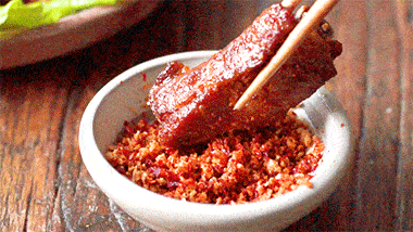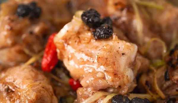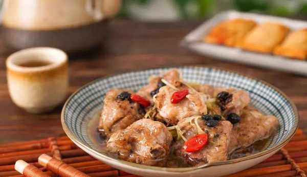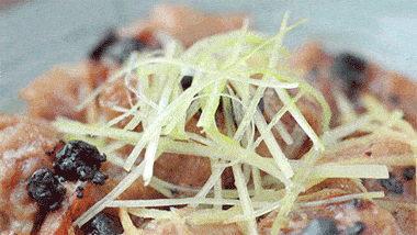 *註:幹豆豉用刀略切碎煸炒後醃制,會使排骨更加入味。
